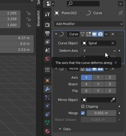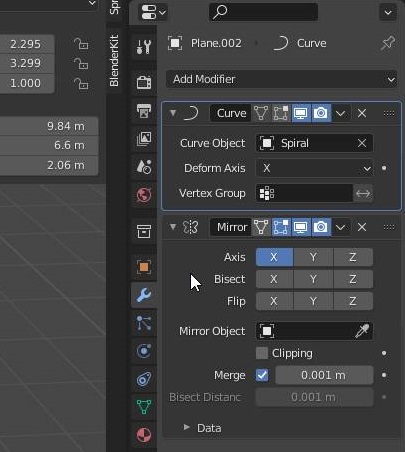 다음으로 해야 할 것은 역시나 커브 모디파이어를 종이 역할을 하게 될 평면에게 추가해 주는 것인데, 일단 그전에 추가한 미러라는 모디파이어 보다, 더 상위에 커브를 두어서 먼저 적용이 될 수 있도록 만들어 줍니다.