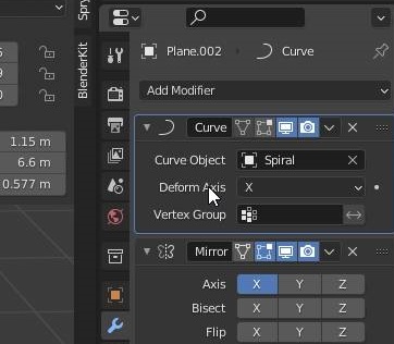 위 스크린샷에서 보이는 것처럼 다시한번 커브 모디파이어에 생성해 놓은 골뱅이를 커브 오브젝트로 지정을 해 보도록 하니다.