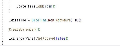 그래서 새로운 스크립트를 만들어서 해결하려고 했지만, 문제는 프리펩으로 되어 있는 저 날짜 입력기를 어떻게 할 수 없다는 데 있습니다. 한마디로 너무 큰 공사가 되어서 하나하나 건드려야 하는데, 멀쩡한 다른 날짜 입력기까지 건드려서 애를 먹는 상황이 되었습니다. 아무래도 다시 돌아가야 할 듯 합니다.