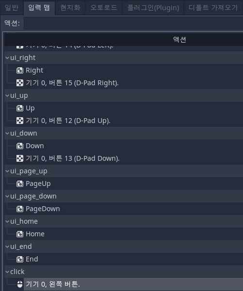 우선 이 작업을 하기 위해서 클릭이라는 액션을 프로젝트 설정에서 하나 만들어 주도록 했습니다. 이것만으로는 확실히 부족하지만, 일단 시간이 없어서 여기까지 밖에 할 수 없기는 없었습니다. 아무튼 아직까지는 원하는 위치에만 어떻게 아이콘을 위치 시키는 것은 매우 힘들기는 힘든 상황입니다.