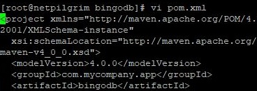 그리고 나서 다음으로 진행한 것은 역시나 vi 명령어를 이용해서 pom.xml파일을 수정하는 것 입니다. 이걸 미드나잇 커맨더에서 실행할 수도 있지만, 아직까지는 이건 어렵고, 어려므로 vi가 편해서 그냥 사용하고 있습니다.