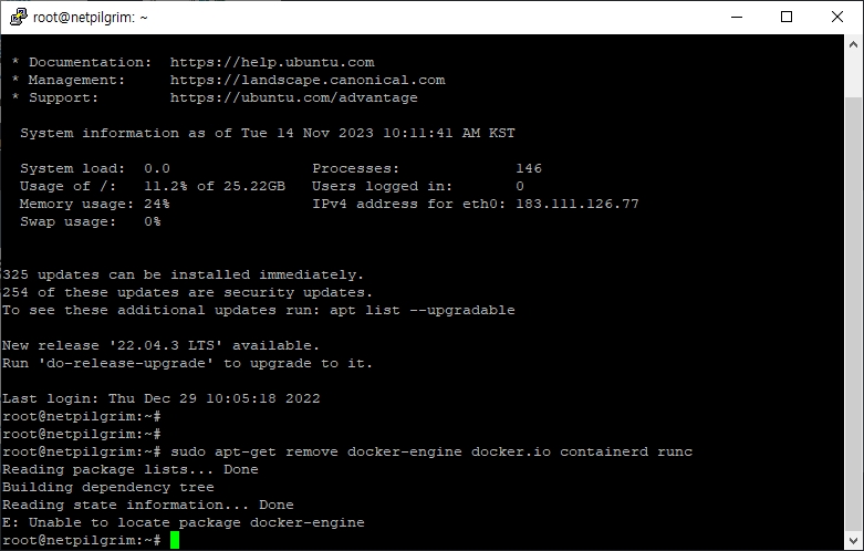 먼저 책에서 본 것처럼 명령어를 putty 터미널을 통해서 일단 연결해 주도록 합니다. 가장 먼저 입력한 것은 apt를 업데이트 한 다음에, docker 자체를 설치하는 것 부터 먼저 했습니다. 이전에 먼저 한 것으로는 기존에는 Centos 7을 사용한 것에서 그냥 우분투 리눅스를 그대로 설치해서 다시 시작하고자 합니다.