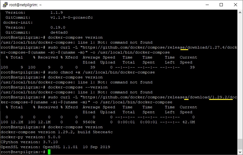 그런데 docker-compose라는 것을 version이라고 같이 붙여서 치면 에러가 떴습니다. 이게 어디서 문제인가 했더니, 결국 releases라고 s자 하나 빼먹는 실수로 인해서 설치가 되지 않았던 것 이었습니다.