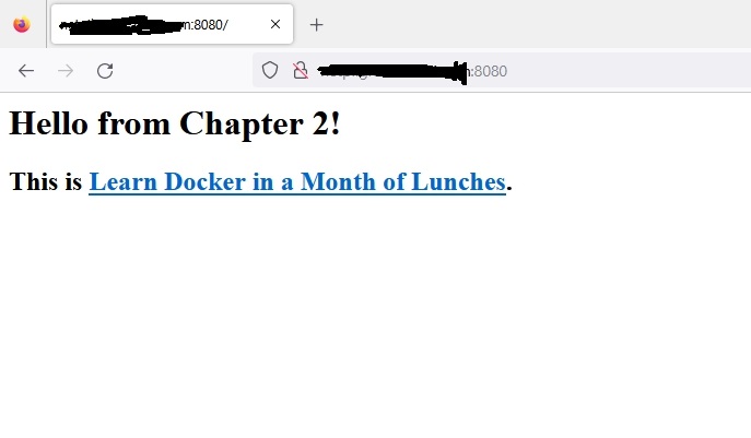 이렇게 해서 현재 작동중인 컨테이너를 열어 보았더니, 위 스크린샷에서 볼 수 있는 것처럼 제대로 나오는 것을 확인할 수 있었습니다. 이제부터가 문제인데, 책에서는 localhost:8080을 입력하면 된다고는 했지만. 제 경우에는 서버가 제 컴퓨터가 아니라 다른데 설치되어 있다는 것이 문제입니다.
