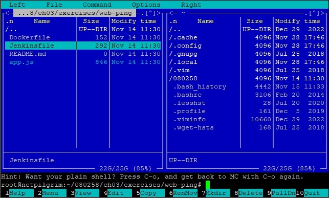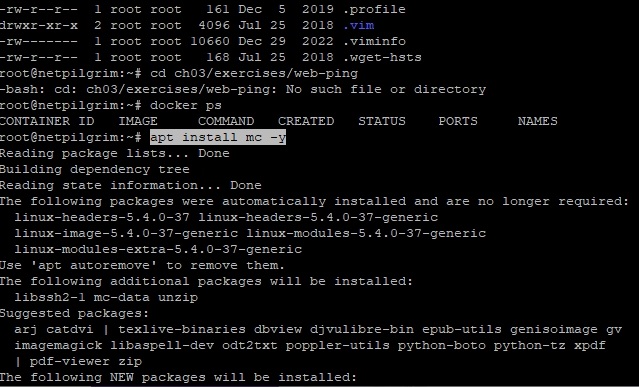 일단 이렇게 해서 제대로 midnight commender를 설치하고 나서, 어떻게 챕터3의 실습자료가 어디에 있는지를 한번 찾아가 보기는 봤습니다. 일단 여기서는 제대로 실습에 필요한 파일들이 있는 것을 확인할 수 있었습니다.