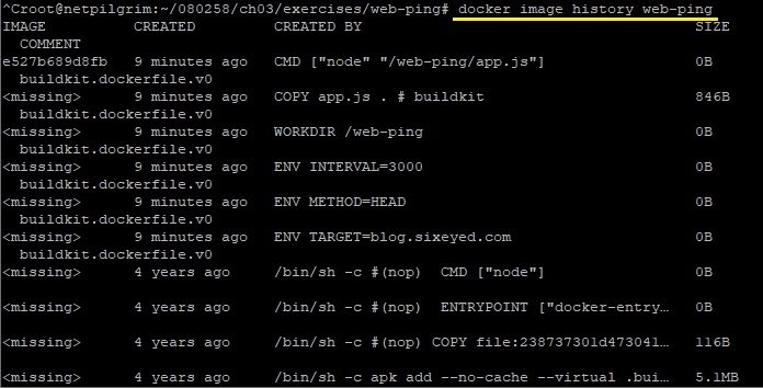 그리고 이렇게 책을 통해서만 알 수 있었는 것이 있었는데, docker image history라는 명령어를 입력해서 특정한 도커 이미지가 어떤 역사를 지니고 있는지에 대해서 한번 알아볼 수 있습니다.이렇게 해서 또 하나의 실습을 마무리 해 보았습니다.