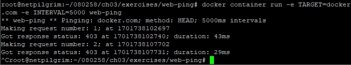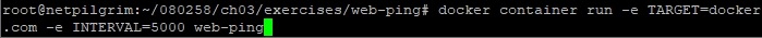 그리고 이제는 컨테이너를 만들기 위한 명령어를 입력하도록 합니다. 일단 여기서 타겟으로 하는 웹사이트를 지정할 수 있으며, 다음으로는 신호를 보낼 시간간격을 입력하도록 합니다.