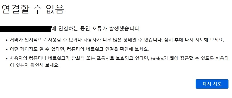 그런데 한가지 문제가 발생하였습니다. 파이어 폭스를 이용해서 홈페이지를 띄워 보려고 했습니다만, 그냥 홈페이지도 접속이 안되는 상황이 되었습니다. 아무래도 전에 비슷한 것은 성공했는데, 것을 생각하면 무언가 조치를 취해야 하는 것이 한두가지가 아닌 듯 합니다.