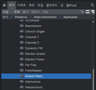 이렇게 악기를 하나하나 분류별로 되어 있는 것을 고른 다음에, 이걸 가지고 와서 하나하나 드레그 앤 드롭으로 설치하는 방식으로 어떻게 할 수 있습니다. 이렇게 하는 것까지, 정말인지 사용하기 편리하게 되어 있는 것은 사실이라는 생각이 듭니다.
