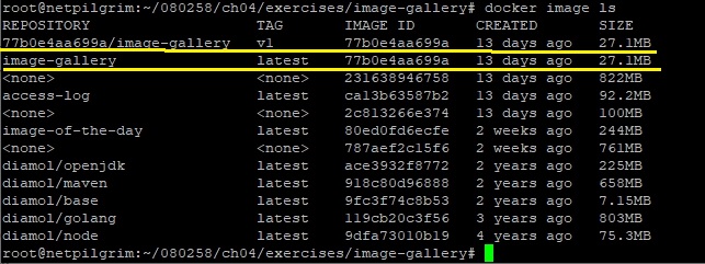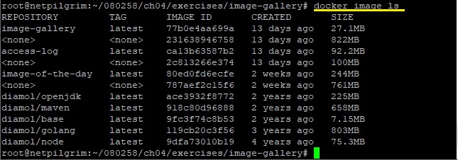 다음으로는 내가 빌드한 이미지가 무엇무엇이 있는지 알기 위해서, docker image ls라고 타이핑을 해서 가지고 있는 모든 이미지의 리스트를 불러와 보도록 합니다.