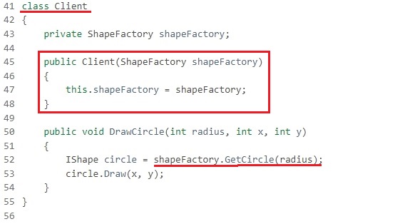그 다음으로 클라이언트 항목에서 눈여겨 볼 것이 하나 있습니다. 바로 C#에서 어떻게 하면 클래스가 받는 매개변수를 지정할 수 있는가 인데, 일단 클래스를 선언하고 나서 public 클래스명 (자료형 변수명)을 선언하는 것으로 C#에서 이를 가능하게 만들어 줄 수 있습니다.