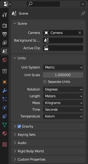 먼저 프로퍼티 윈도우로 가서, 위 스크린샷에서 볼 수 있는 것과 같이, 일단 유닛 시스템이 Metric이면서 동시에 스페일이 1로 되어 있는 기본 단위로 되어 있는 것을 확인할 수 있습니다.