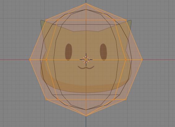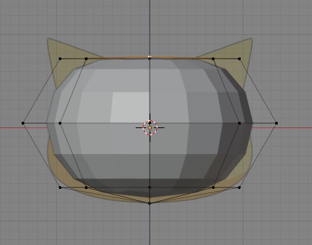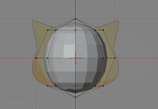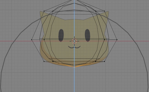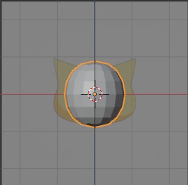 shift + z키를 눌러서 와이어 프레임으로 바꾸어준 다음에 이를 고양이의 뺨에 닿을 정도로 S키를 눌러서 사이즈를 키워줘야 하는데, 실수로 너무 크게 키우는 실수를 한번 하고 말았습니다.