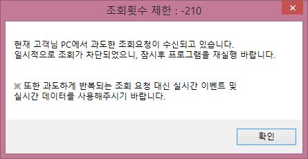 우선 위 스크린샷과 같이 과도한 조회가 요청이 된다는 문제가 나오는 것 입니다. 그래서 하는 수 없이 조치를 취하기는 취했습니다.