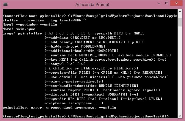 그런데 실수로 onefile을 onfile이라고 오타를 내서, 제대로 작업이 되지 않는 것을 확인할 수 있기는 있었습니다. 그래서 다시 한번 더 시도를 합니다.