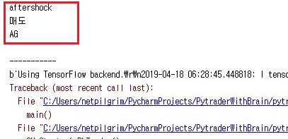 그래서 이제는 거래할 주식의 양이 나오는 것을 볼 수 있었습니다. 이제 이것으로 거래할 주식의 수량까지 어떻게 가지고 오는 데는 성공했기 때무에 이제는 이걸 어떻게 더 깔끔하게 다듬고, 이를 계속해서 어떻게 결정을 하는 데 까지 나와야 한다는 것이 남아 있습니다. 아직 이 장애물을 모의투자가 가능한 수준까지 간 것은 아니긴 합니다.