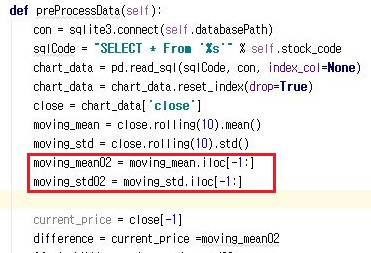 그리고 나서 위 스크린샷처럼, pandas에서는 평균과 표준편차를 구할 수 있는 함수가 있기는 있습니다. 그래서 이 방법을 사용하는 것으로 10일 이동평균선을 구하도록 합니다.