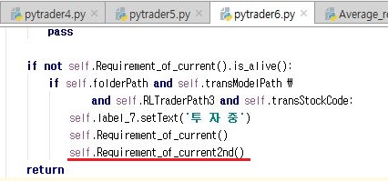 다음으로는 이 작업을 위해서 새로운 pytrader인 pytrader6를 생성해 주도록 합니다. 여기서는 이전에는 각각의 py파일에서 QProcess로 돌렸다면, 이번에는 한개의 py파일에서 각각의 메서드 형식으로 돌리고자 합니다.