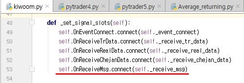 그래서 한번 Kiwoom.py로 가서, send_order가 제대로 전달이 된 것이 되기는 되었는지 알아보도록 하고, 이 표식을 찍은 다음에 다시한번 파이참을 실행해 보았습니다.
