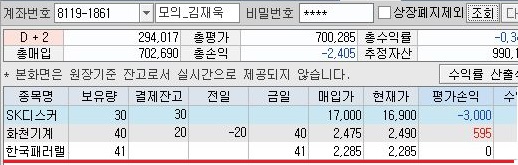 일단 어제에 이어서 화천기계, 신송홀딩스, SK디스커버리 우선주, 한국패러랠의 주식을 목표로 해서, 평균회귀 방식으로 수익을 올릴 수 있으리라 생각을 하고서 한번 작업에 들어가 보도록 합니다.