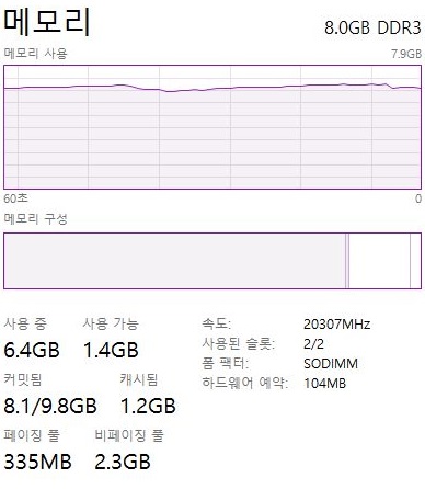 이렇게 해서 실행을 시킨 다음에, 위 스크린샷처럼 한번 작업관리자를 통해서 메모리 사용량을 체크해 보고자 했습니다. 일단 막 시작할 무렵에는 6.4기가를 사용하고 있는 것을 볼 수 있습니다.