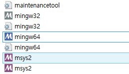 이렇게 해서 C드라이브에 생성이 된 msys폴더에 들어가 보면, 위 스크린샷처럼 mingw64와 mingw32가 있는 것을 볼 수 있습니다.