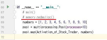 그래서 하는 수 없이 위 스크린샷에서 볼 수 있는 것처럼 도로 파이참으로 돌아 오도록 하면서, 이번에는 한번만 호출이 되는 nedmalloc()이라는 C언어 라이브러리의 함수를 일단 주석처리 하도록 합니다.