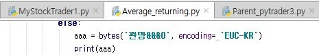 먼저 위 스크린샷처럼 str로 만들어 주는데, EUC-KR이라고 인코딩할 유니코드를 미리미리 전해 주도록 하는 방법을 채용해 보았습니다.