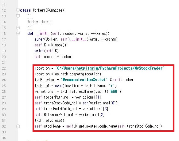 우선 첫번째 작업입니다. 일단 QRunnable에서 위 스크린샷과 같이 communication.txt에서 정보를 가지고 오는 것을 먼저 해야만 합니다.
