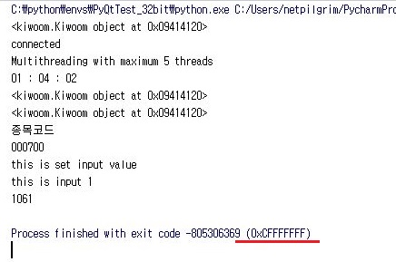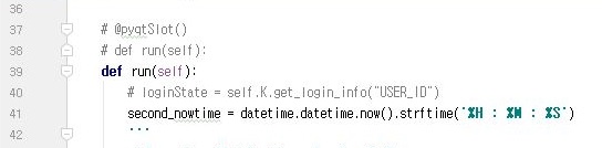 다음으로 의심을 한 것은 싱글톤이 되어서-Kiwoom 클래스를 PyQt의 싱글톤으로 만들어서 이런 문제가 생긴 것이 아닌가 하는 생각이 들어서 도로 원래의 PyQt5 클래스로 돌려 놓았습니다.