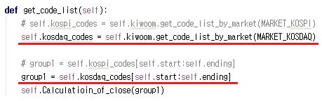 먼저 해야 할일은 위 스크린샷처럼 코스피로 되어 있던 것을 모두 코스닥으로 바꾸어 주는 작업을 먼저 해야만 했습니다.