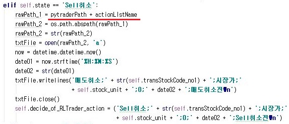 그리고 나서 매도나 매수 취소가 일어날 경우 기존에는 그냥 action_list1번에 모두 집중이 되도록 되었는데, 그러지 말고 각자의 액션 리스트에 넣도록 해 보도록 합니다.