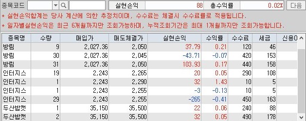 단 1번의 손해, 그 중에서 한번이 가장 커서, 나머지 이익을 본 것이 많이 줄어든 것을 볼 수 있었습니다. 아무튼 이런 결과도 결과로 얻을 수 있기는 있었습니다. 이제 다음 작업은 무엇을 해야 할지 아직은 감이 잡히지 않지만, 그래도 어디서 에러가 났는지는 잡아낼 수 있는 방법을 강구해야 겠다는 생각이 듭니다.