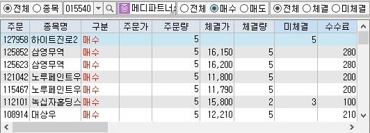 그리고 이 날은 거래의 양이 많았는지 미체결도 그렇게 많지 않은 양이 나오는 것을 볼 수 있었습니다. 아무튼 이렇게 미체결도 적었고......