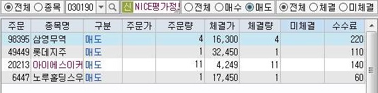 그리고 매수한 내용이 이전에도 많다 보니까, 매도역시 많이 일어나는 것을 볼 수 있습니다. 아무튼 이렇게 해서 매수/매도를 살펴 보았고, 이날은 미체결이 나오지는 않았습니다.