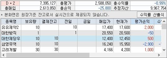 그래도 규모가 작어서 이런 것일까요? 100만원으로 시작한 종목에 대해서는 1종목이 적은 6개의 종목을 일단 내 보내야 한다는 결론에 도달하게 되었습니다. 이제 문제는 이걸 일일히 수동으로 하는 것은 상당히 힘이 드는 일이고, 이런다고 특별한 프로그램을 만드는 것도 쉽게 되는 것이 아니기 때문에 고민은 고민이 됩니다.