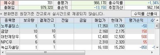 그리고 나서 위 스크린샷에서 볼 수 있는 것처럼, 손해도 보기는 보아서, 수익이 800원대인 것을 볼 수 있었습니다. 1000만원에 비하면 수익이긴 하지만, 상당히 짜다는 생각이 듭니다.
