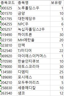 이렇게 해서 위 스크린샷처럼 처분을 해야 할 종목들을 결정할 수 있게 되었습니다. 일단 상당히 많은 종목들이 나왔다는 것을 알 수 있었습니다.