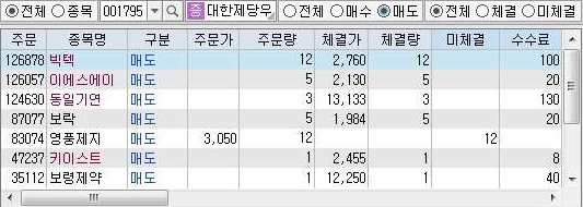 그리고 나서 매도를 한번 보고자 하면, 이 역시 당상히 다양한 종목의 매도가 일어난 것을 확인할 수 있었습니다. 다만 수량은 1000만원에 비교해서 상당히 적은 것을 확인할 수 있습니다.