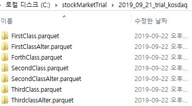 잠시 기다린 끝에 위 스크린샷처럼 코스닥의 결과인 txt파일을 비교 분석해본 파케이 형식의 파일을 확보할 수 있었습니다. 이제 다음 작업을 이어 가도록 해 봅니다.