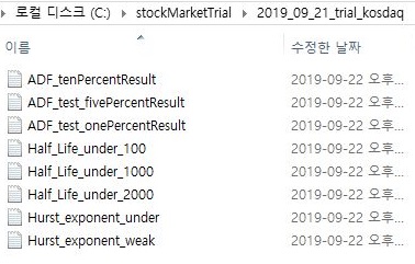 역시나 이번에는 작업을 하기 위해서 위 스크린샷에서 보이는 것처럼 일단 코스닥의 결과가 있는 폴더를 지정해 주도록 합니다.