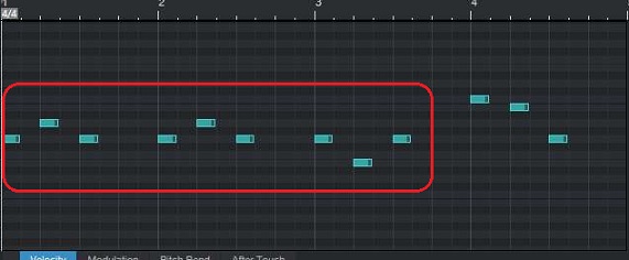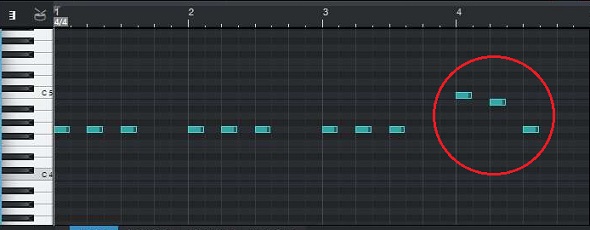 그래도 지루하다는 감이 있을 수도 있기에, 위 스크린샷처럼 마지막 부분을 C5, B4, G4로 만들어 주도록 하는 변화를 주도록 합니다.
