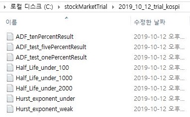 이렇게 해서 만들어진 결과들인 txt파일을 위 스크린샷과 같이 정리해 보도록 합니다. 일단 코스피의 결과를 모두 모아서 정리해 두었습니다.