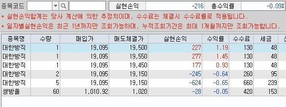 다음으로 해야 할일은 대조군에서 한번 매도가 얼마나 일어났는지를 한번 알아보도록 했습니다. 그렇게 해서 알아보니까, 2종목에 대해서 매도가 일어났습니다.