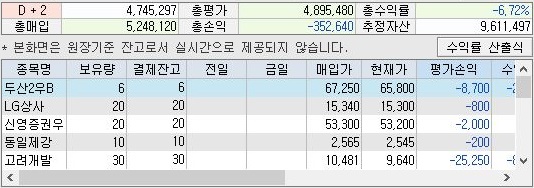 일단 위 스크린샷에서 볼 수 있는 것처럼 문제는 여전히 총 수익률이 마이너스 6.7%라는 손해를 보는 것을 확인할 수 있었습니다.
