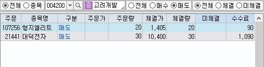 그리고 나서 매도상황을 한번 살펴 보고자 하면, 위 스크린샷에서 나와 있는 것과 같이, 일단 2종목의 매도가 일어난 것을 확인할 수 있었습니다.