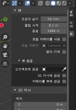 먼저 위 스크린샷과 같이 N키를 눌러서 나오는 사이드 메뉴에서 뷰 항목에 들어가 보도록 합니다. 여기서 뷰 잠금이라는 메뉴를 한번 유심히 봐야 합니다.