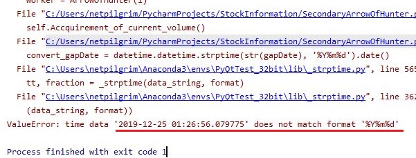 그러자 이번에는 str형식의 문자열을 요구하지, 시간 형식의 데이터를 요구하지 않는다는 것을 나타내면서 또 다른 오류 메세지가 뜨는 것을 볼 수 있었습니다.