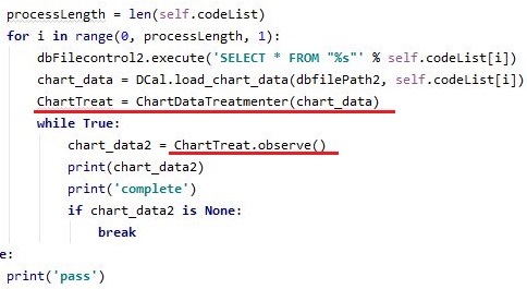 그래서 한번 이번에는 while문을 사용해서 chart_data2가 없으면 저 while loop를 벗어나도록 설계를 하도록 했습니다. 일단 이렇게 해서 작동을 시키니.........