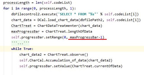 그래서 여기서는 일단 보여드리지 못했으나, 빠른 순간이기는 하지만, 일단 제대로 프로그레스 바가 채워지는 것을 목격할 수 있었습니다. 그래서 다음으로 이게 1개의 데이터 주식 종목에 대한 것이라서 상관없는데, 여러개의 종목이 있으면 total process의 진행도 표시해야할 필요성이 있습니다. 다음 포스팅에서는 이에 대해서 다루어 보고자 합니다.